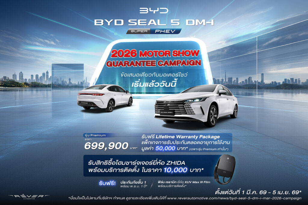 บริษัทฯ การันตีการชดเชยส่วนต่างระหว่างแคมเปญนี้และแคมเปญที่ออกในช่วงวันที่ 1 มีนาคม 2569 จนถึงวันที่ 5 เมษายน 2569 ให้แก่ลูกค้าที่ซื้อรถยนต์ไฟฟ้า BYD SEAL 5 DM-i รุ่น Premium ตามแคมเปญนี้