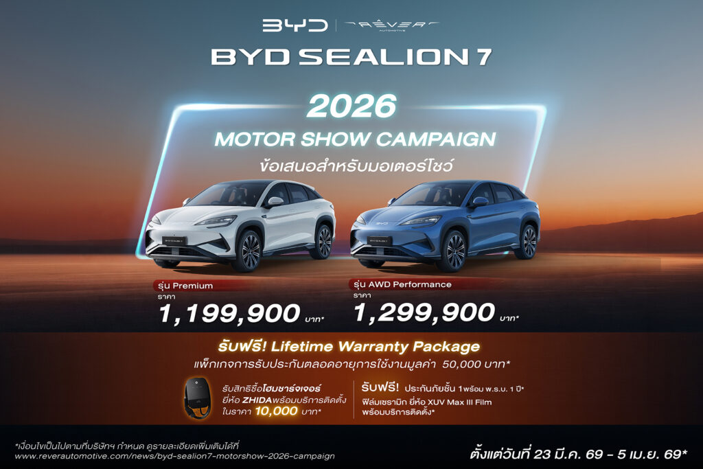 หรือ รุ่นเอดับบลิวดี เพอร์ฟอร์มานซ์ (“รุ่น AWD Performance”) (เรียกรวมกันหรือแทนกันว่า “รถยนต์ไฟฟ้า BYD SEALION 7”) โดยลูกค้าสามารถเข้าร่วมแคมเปญได้ ตั้งแต่วันที่ 23 มีนาคม 2569 จนถึงวันที่ 5 เมษายน 2569 (“ระยะเวลาของแคมเปญ”)