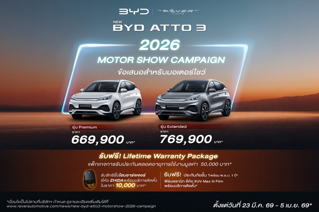 ลูกค้าจะได้รับแพ็กเกจการรับประกัน ตลอดอายุการใช้งาน (Lifetime Warranty Package) มูลค่า 50,000 บาท โดยข้อกำหนดและเงื่อนไขของแพ็กเกจการรับประกันตลอดอายุการใช้งาน (Lifetime Warranty Package) เป็นไปตามที่กำหนดใน https://www.reverautomotive.com/news/lifetime-package-mar-2026-campaign |